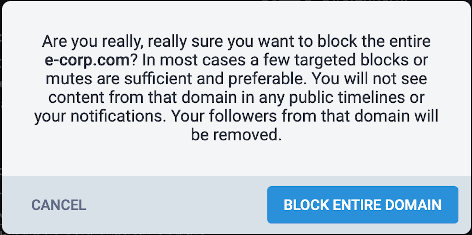 If you see a status or user that is violating the rules of your website, you can report that user to your site's moderators. Clicking the “report” option on the user dropdown or status dropdown will open the report modal. Here, you can (and should) add a note about why you are reporting this account. You can attach certain problematic statuses for additional context on why you are reporting the account, and if their conduct is violating the rules of the remote website, you can also choose to forward the report to their site's moderators.