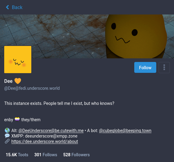 然而,如果你在不同的服务器上看到某人的公开资料,就会遇到一个障碍:该服务器将你视为另一个匿名访问者。不要担心!你可以简单地复制该用户资料的URL,或其中一个嘟文的URL,然后将该URL粘贴到你所在Mastodon的搜索栏中。